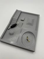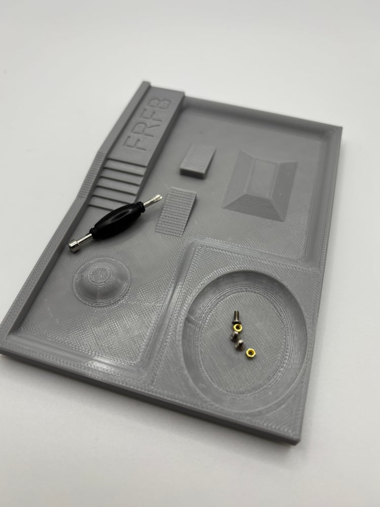Featuring a hidden magnet in the bowl, this tray helps you keep all those tiny metal parts from rolling off the desk while you assemble your fingerboard.